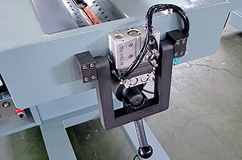 - 中心梢:工件中心定位,採中心梢氣缸頂出,紅外線定焦式線長定位準確,操作簡便。